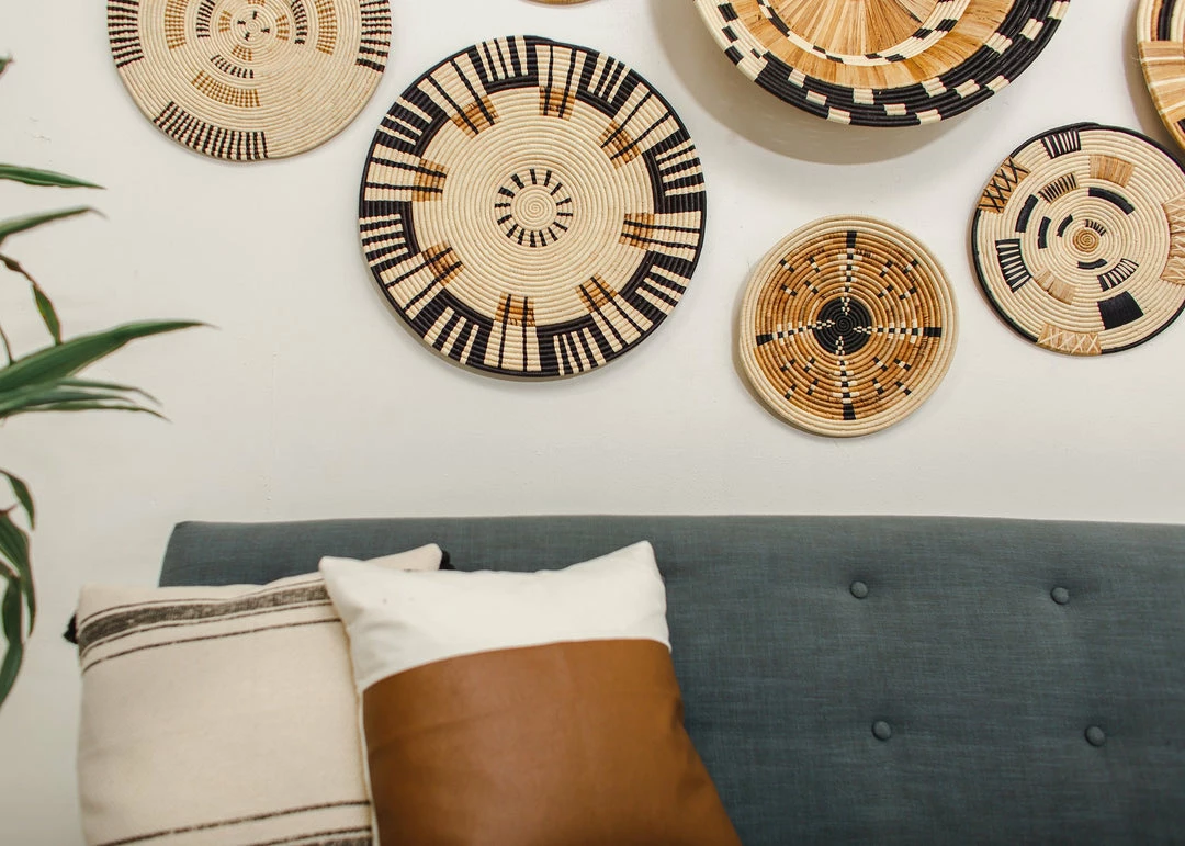 These delicately textured and handcrafted plates were made by groups of women in intimate communities across Uganda. They use the raffia plant and sweet grass to weave them together.