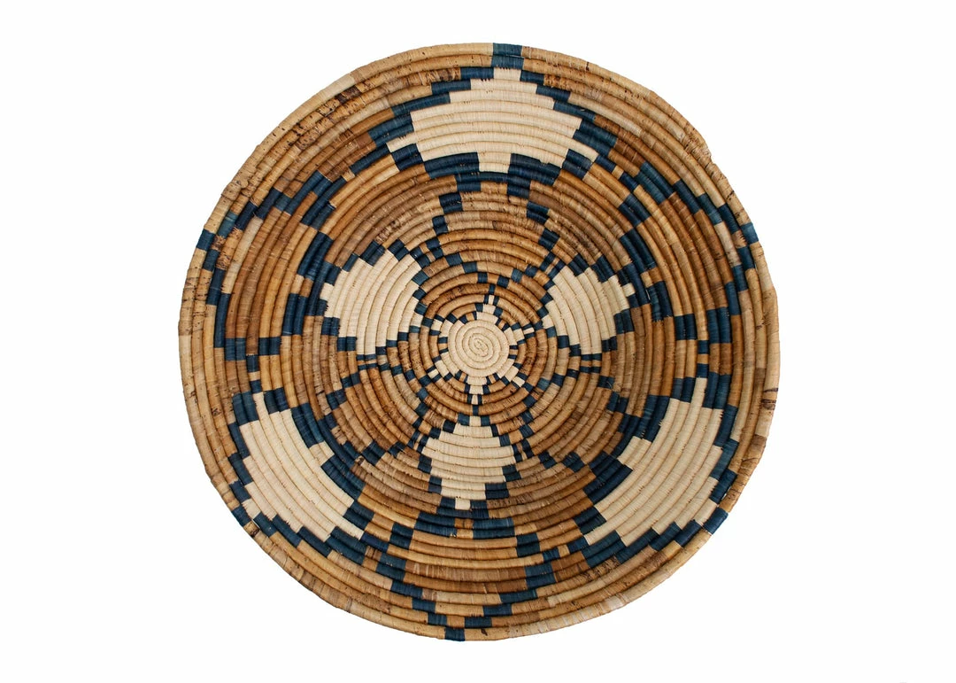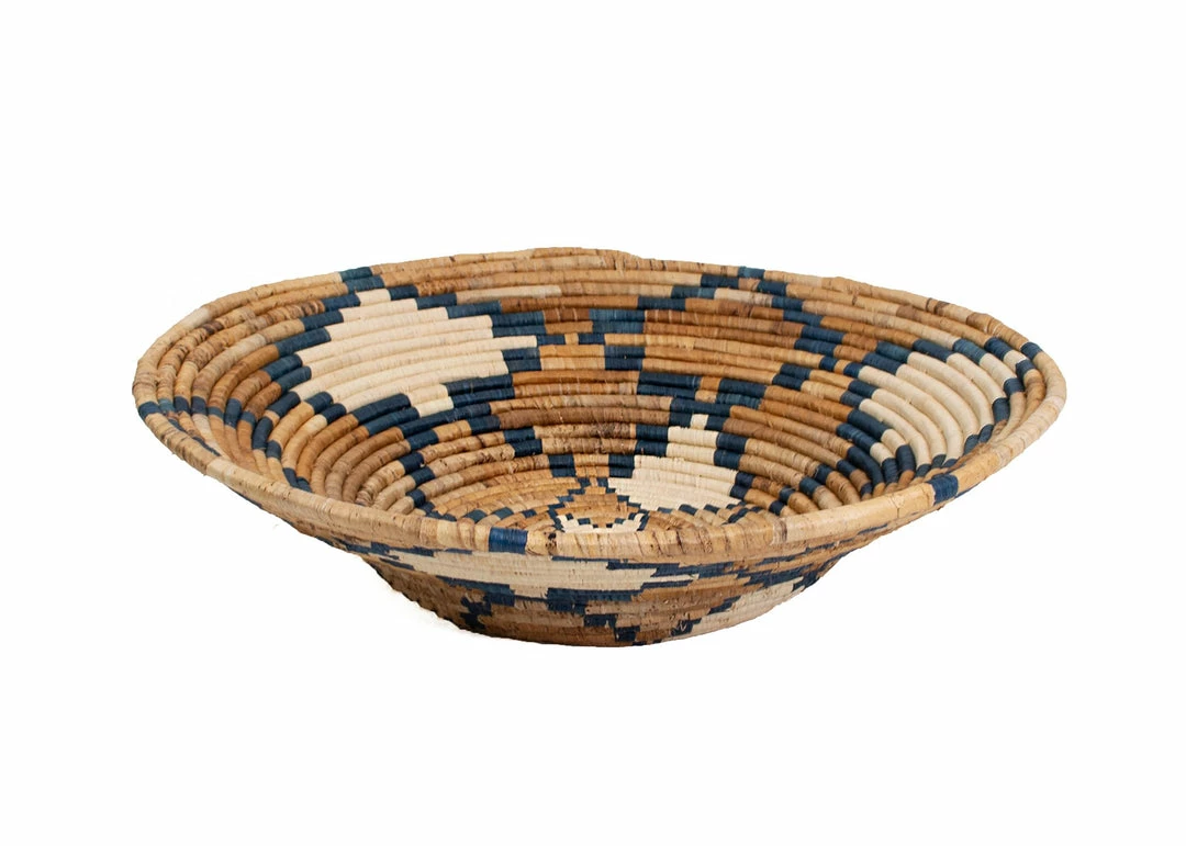 Intricately crafted with timeless tradition, this carefully dyed raffia fiber and banana bark jumbo bowl makes a stunning statement piece. Style it on a shelf for additional storage or decorate your wall for a globally inspired feel. This jumbo bowl is the perfect size for an eye-catching wall piece or style it with our Ugandan wall plates or banana bark baskets for a time-honored basket wall.