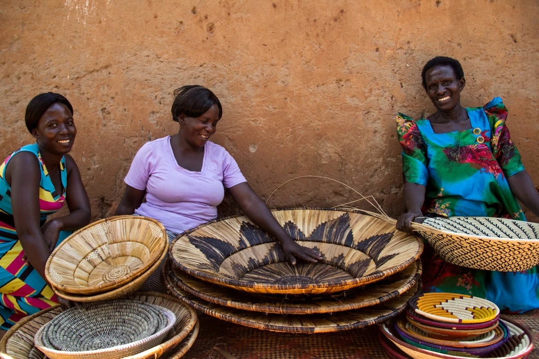 These delicately textured and handcrafted baskets were made by groups of women in intimate communities across Uganda. They use the raffia plant and banana bark to weave them together.