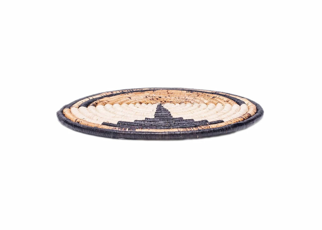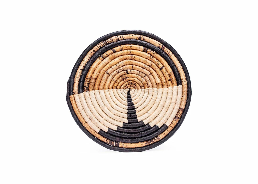 We’ve never seen a more cheerful and chic table top trivet that protects your table.This trivet serves as a pot holder for any counter top or tabletop and is sure to capture the attention of the family and friends you are serving. It not only protects the table, but made with all natural fibers by hand in Uganda it also is eco-conscious and makes an impact. Could it get any better than that?This gorgeous, woven piece is a true work of art. Use as an exquisite center piece to any tabletop or as eye-catching wall decor. A must have for every home decor enthusiast or someone looking to give a personalized hostess gift for birthdays or weddings. You can also pair with other wall paintings or baskets. Each of these breathtaking designs was made with courage and heart by a woman in rural Uganda. There is a hand-stitched loop on the back of each basket as ready to hang wall art.These delicately textured and woven chargers + placemats were made by groups of women in small cooperatives across rural areas of Uganda in an ethical, fair trade environment. They weave together grass and raffia using a sewing needle to achieve these incredible pieces of art.