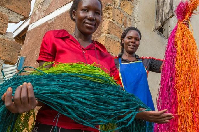 These delicately textured and handcrafted vases were made by groups of women in intimate communities across Uganda. They use the raffia plant and sweet grass to weave them together.