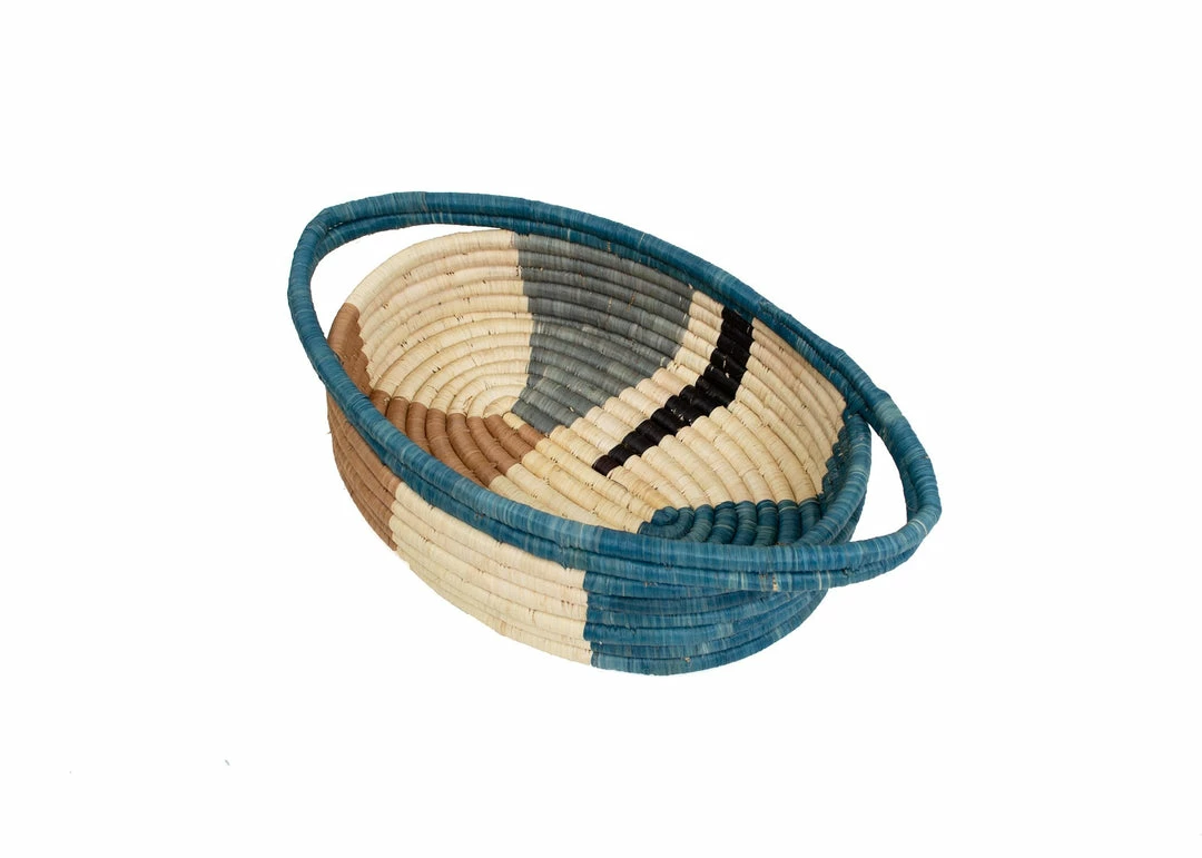 With an oval shape and handles, this raffia basket can be used as a bread basket, storage for wooden spoon or utensils, as a fruit bowl or to store art supplies. Style it in your home for a globally inspired feel.