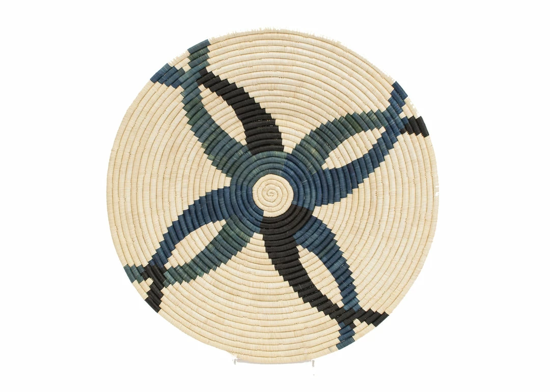 Intricately crafted with timeless tradition, this carefully dyed raffia fiber and sweet grass wall plate is a stunning statement piece. Style it in any room for a globally inspired feel. This beautiful wall plate is the perfect size as a stand alone piece or pair it with plates and trays to create an eye-catching basket wall.