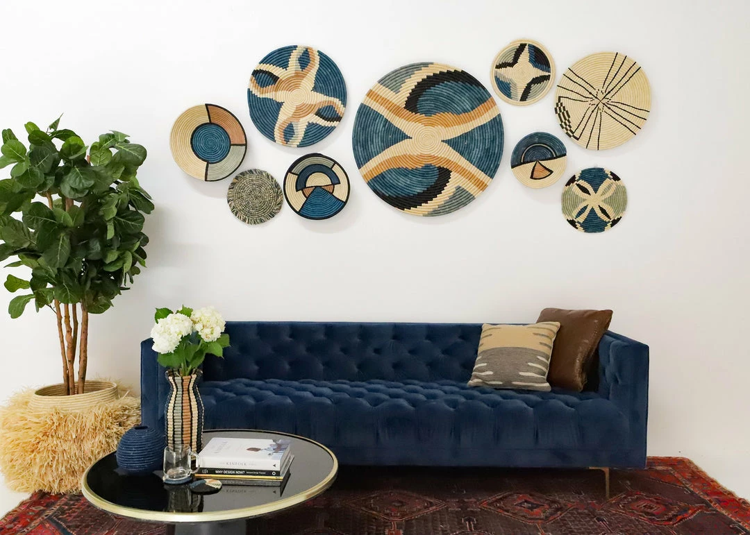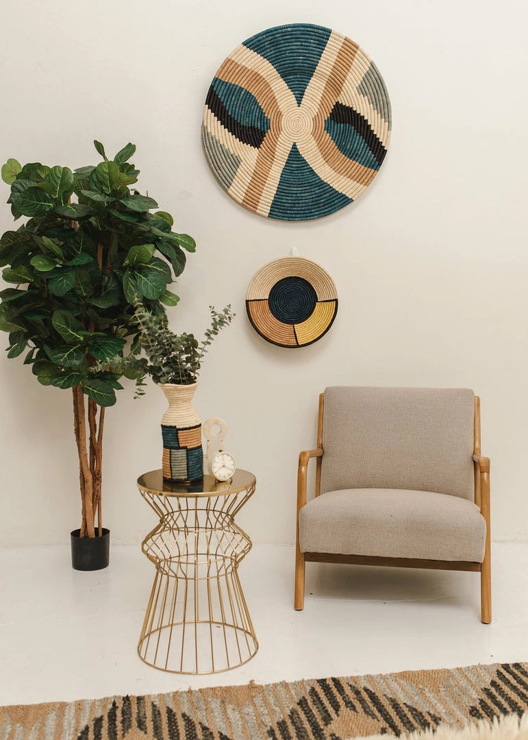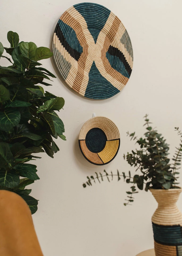 These beautifully intricate wall plates are designed to enhance and magnify any room. Leave the woven plate as a stand-alone piece or pair with other plates or bowls to transform your space. Match to throw pillows in your living room or bed set in your bedroom, each of these breathtaking designs was made with courage and heart by a woman in rural Rwanda. She hand-stitched a loop on the back of each basket so you too, can enjoy this piece easily on your wall.