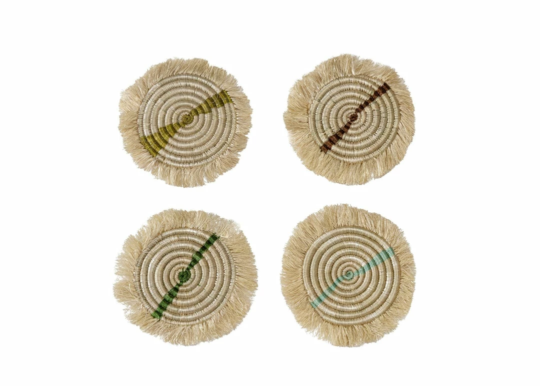 These colorful coasters even make drinking water more fun! These coasters are essential for styling your home and hosting dinner parties. These stylish coasters absorb moisture and keep your indoor and outdoor furniture looking super stylish. You’ll want to drink more water, wine, or coffee just to be able to use these handwoven coasters. Entertain guests in style with these gorgeous, heat-resistant & absorbent coasters! Sure to elevate your living room tabletops or bar cart, mix and match with your favorite table linens and accent furniture to blend luxe decor and function. These colorful, textured coasters were made by groups of women in small cooperatives across rural areas of Rwanda in an ethical, fair trade environment. They weave together sweetgrass and sisal fibers using a sewing needle to achieve these incredible pieces of art.