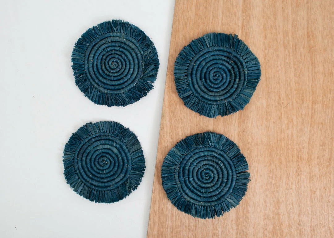 Entertain guests (or just your morning coffee) in style with these gorgeous, uniquely natural & absorbent coasters! These coasters are essential for styling your home and hosting dinner parties. They are perfect for your wine glass in the evening, or your morning coffee mug! Display on your bar cart as a stunning statement piece or match with your favorite table linens. These stylish coasters absorb moisture, keep your indoor and outdoor furniture looking super stylish. These delicately textured and woven coasters were made by groups of women in small cooperatives across rural areas of Uganda in an ethical, fair trade environment. They weave together grass and raffia using a sewing needle to achieve these incredible pieces of art.
