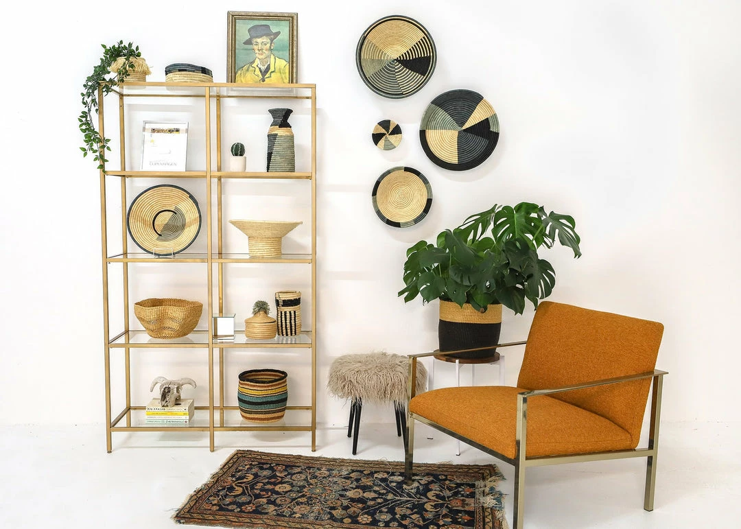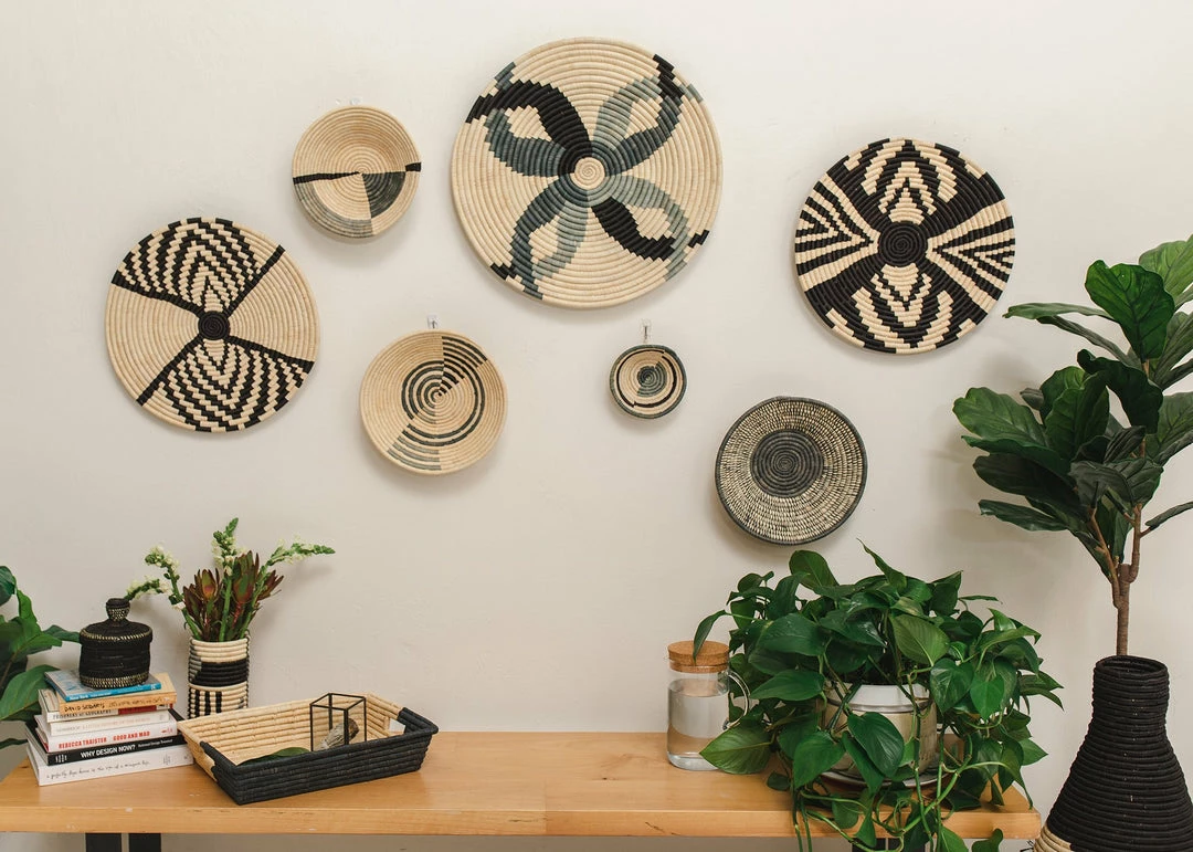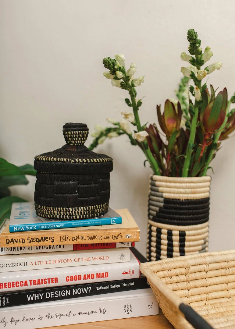 These delicately textured and handcrafted vases were made by groups of women in intimate communities across Uganda. They use the raffia plant and sweet grass to weave them together.