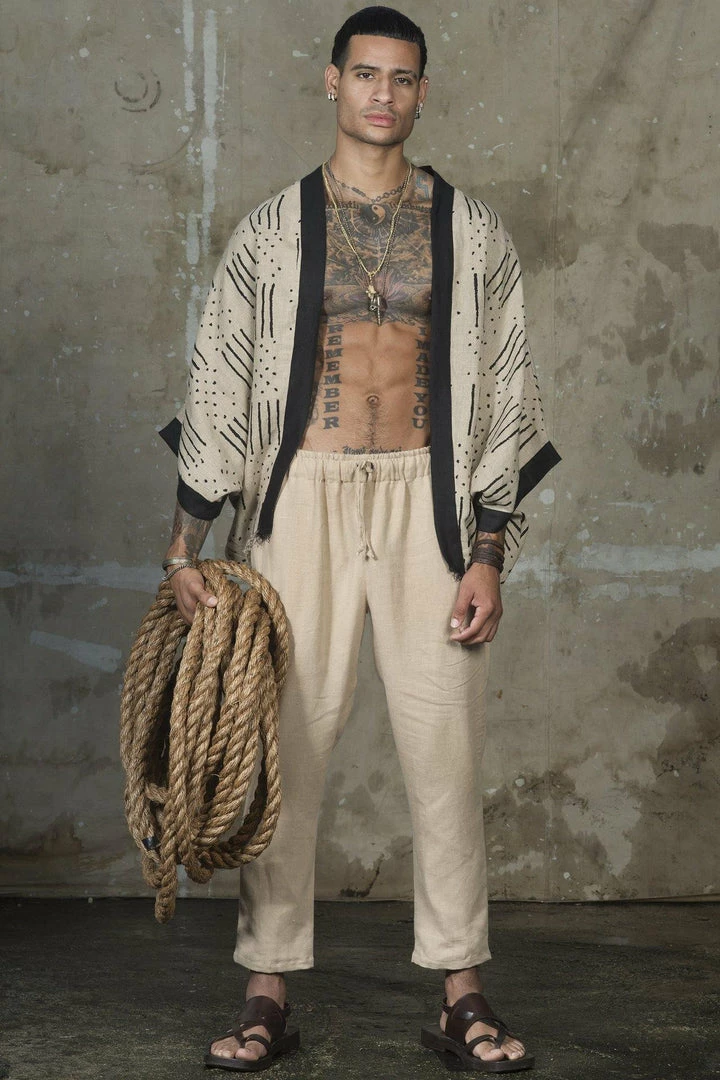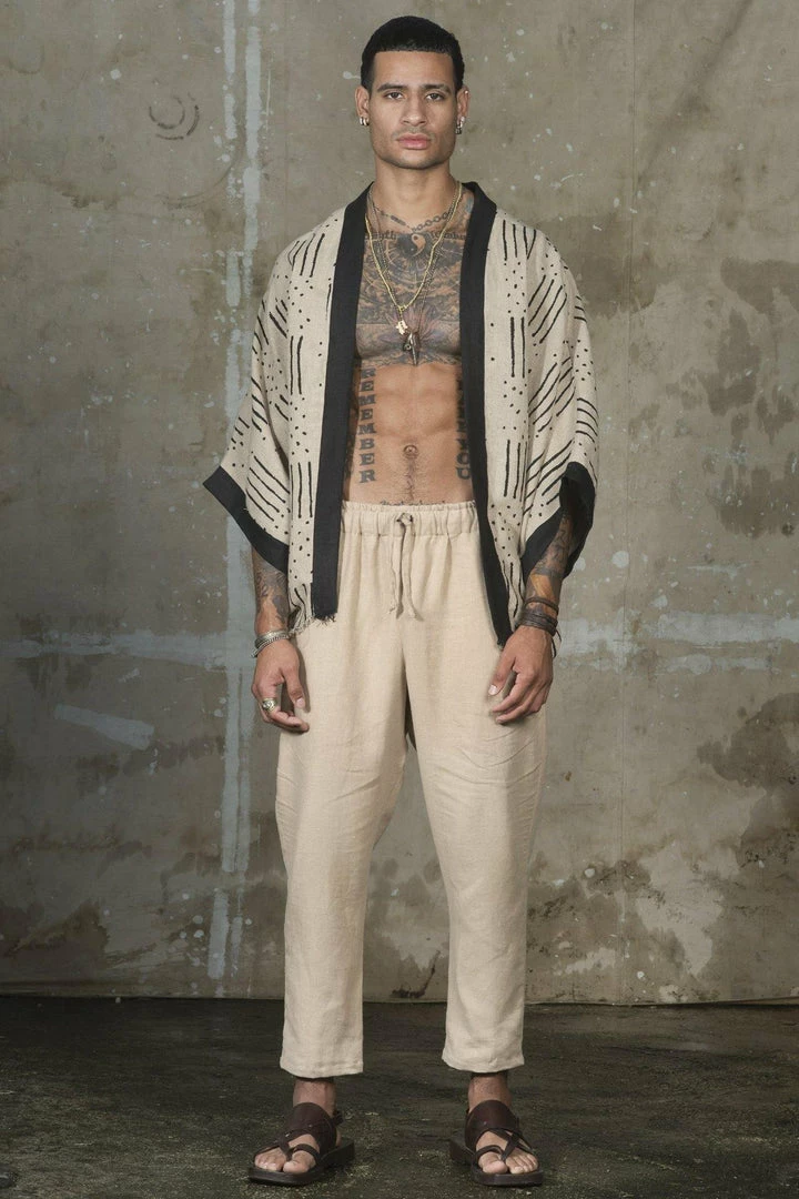 Melrose Tribe cape is a modern, exotic piece that is perfect for layering and is guaranteed to add a unique flair to any outfit. This cape features billowy sleeves and the linen material breaths while you enjoy your day.