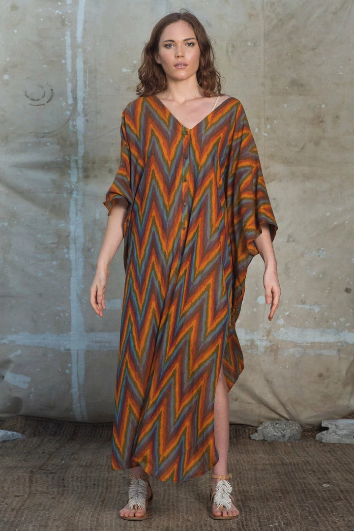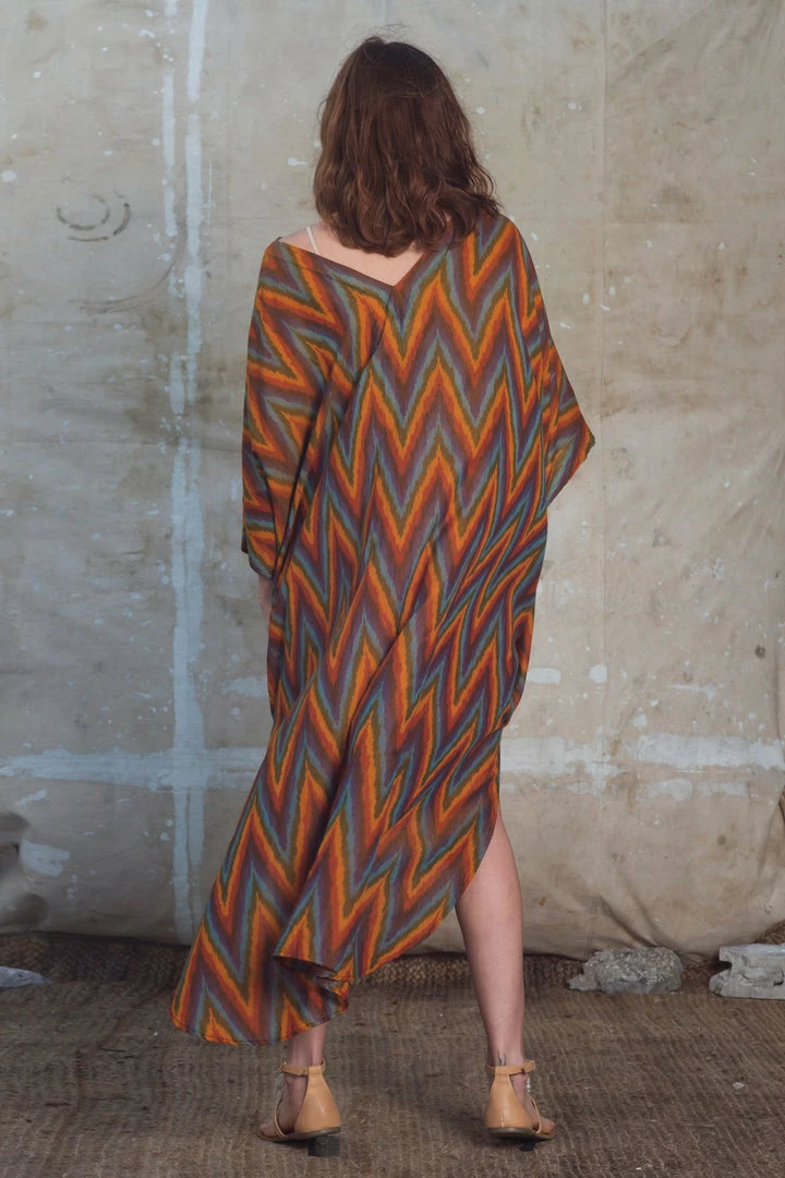 Nadia Tunic can be worn as a tunic, or as a layering piece. The soft flowing material is available in three unique colors with a gorgeous zig-zag pattern. One size.