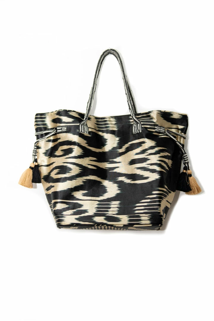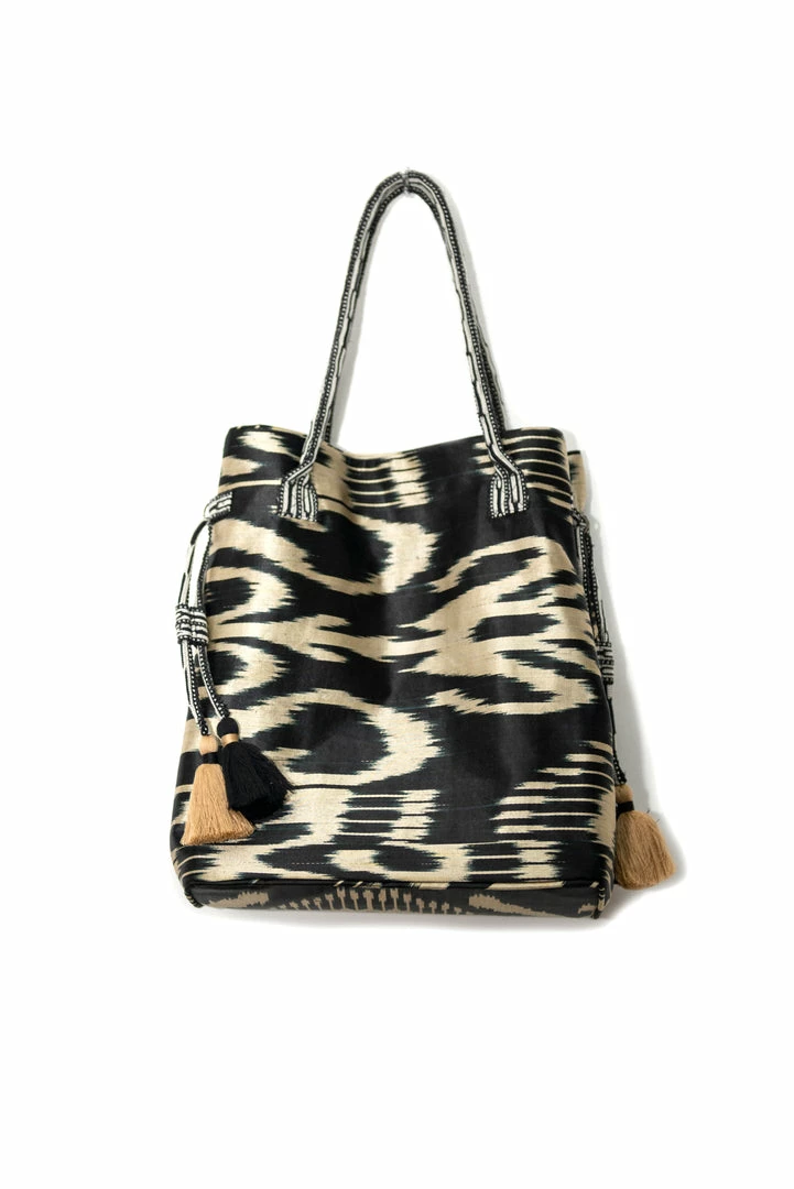 UZBEKISTAN Expandable Ikat Bag With Tassels