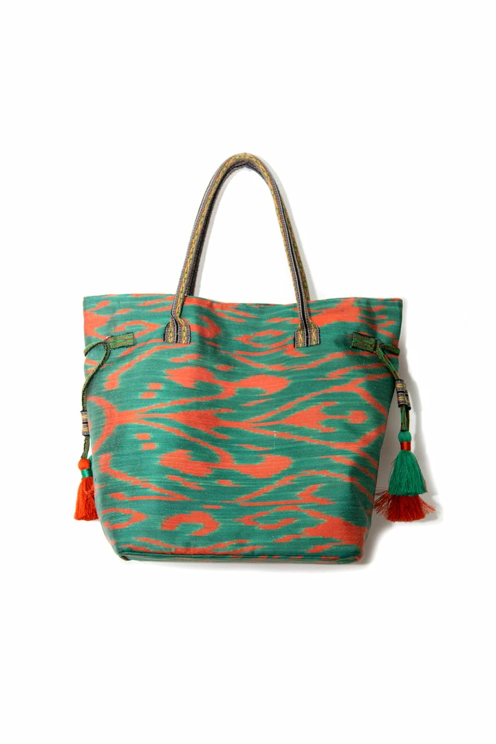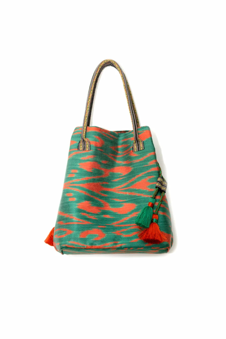 UZBEKISTAN Expandable Ikat Bag With Tassels BAGS