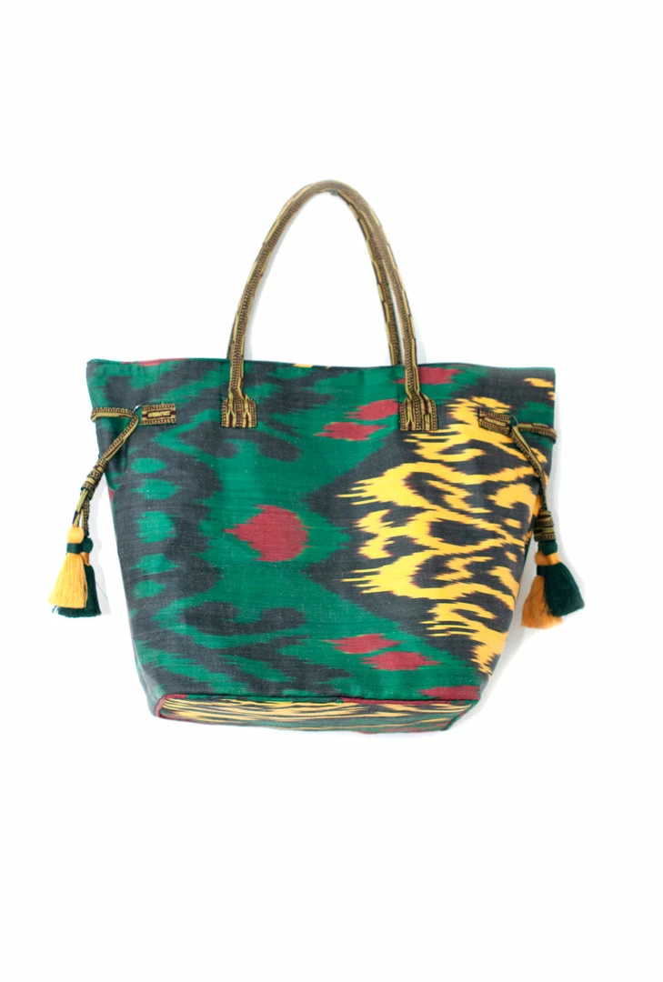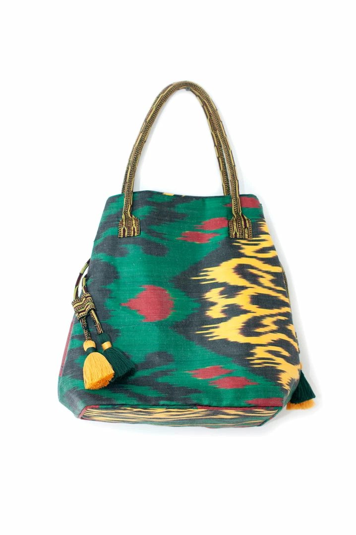 UZBEKISTAN Expandable Ikat Bag With Tassels BAGS